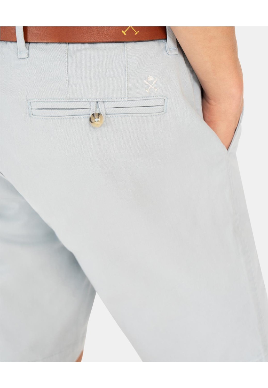 Bermudas | Bermuda Icon Colors Chino Detalles que Importan • Tejido: Sarga de algodón con elastano; flexible, resistente y con caída impecable • Fit: Corte signature HandN; equilibrio perfecto entre ajuste y comodidad • Acabados: Cierre de botón y cremallera, bolsillos laterales y traseros con bordado, Guía de Estilo Combínalas con polo Icon y náuticos para el club. Perfecto para ambientes náuticos y clubes costeros. La tradición británica adaptada al Mediterráneo.