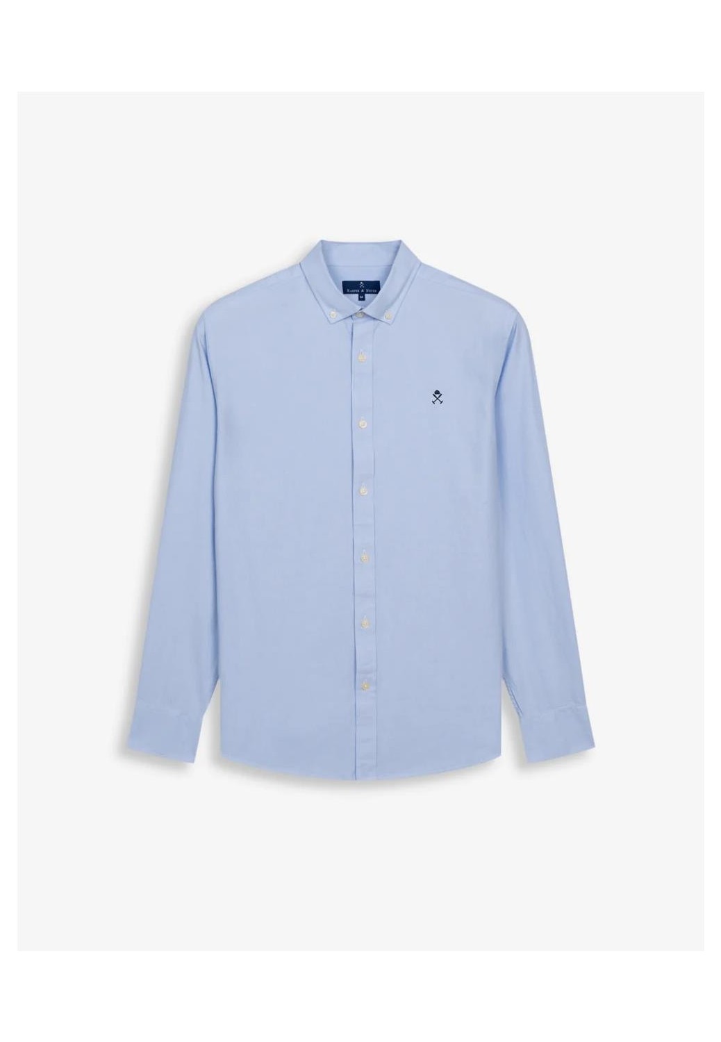 Un imprescindible del armario Harper & Neyer. Camisa de algodón con estructura impecable y logo bordado. Fácil de combinar, fácil de vestir. Disponible en colores clásicos.