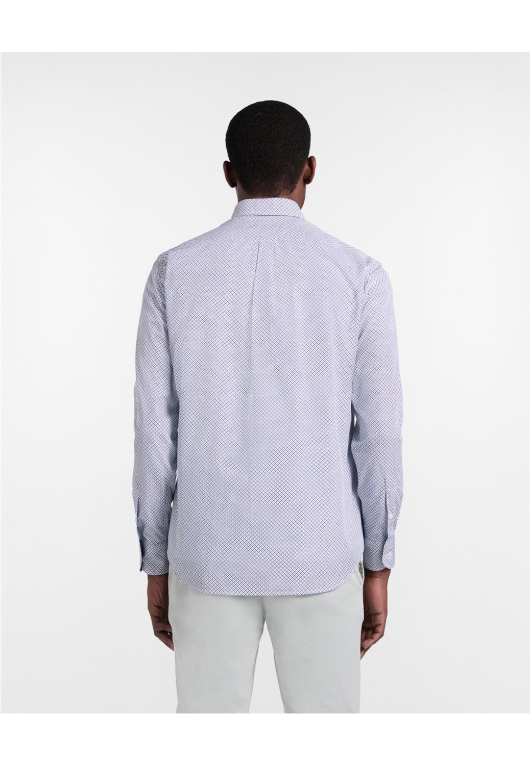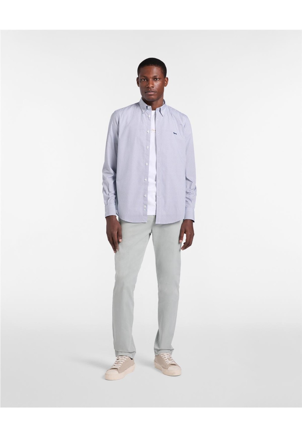 Elegante camisa con microestampado que añade un toque distintivo a tu armario de diario. Hecha de algodón puro, ofrece comodidad y transpirabilidad, ideal para el uso diario. El diseño presenta cuello y puños abotonados con forro en contraste. Perro salchicha bordado en el pecho izquierdo. Esta camisa es la prenda perfecta para realzar tu look con estilo y practicidad.