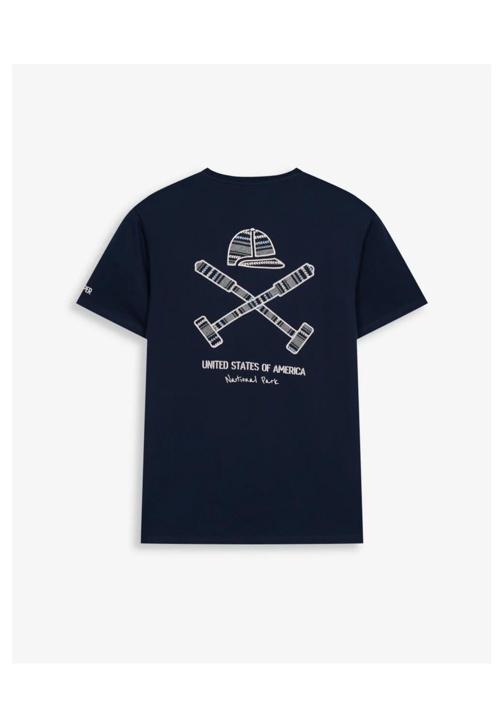 Camiseta Ranger en algodón 100% en color blanco, marino y verde claro, con logo grande bordadoen espalda y logo pequeño en el delantero.