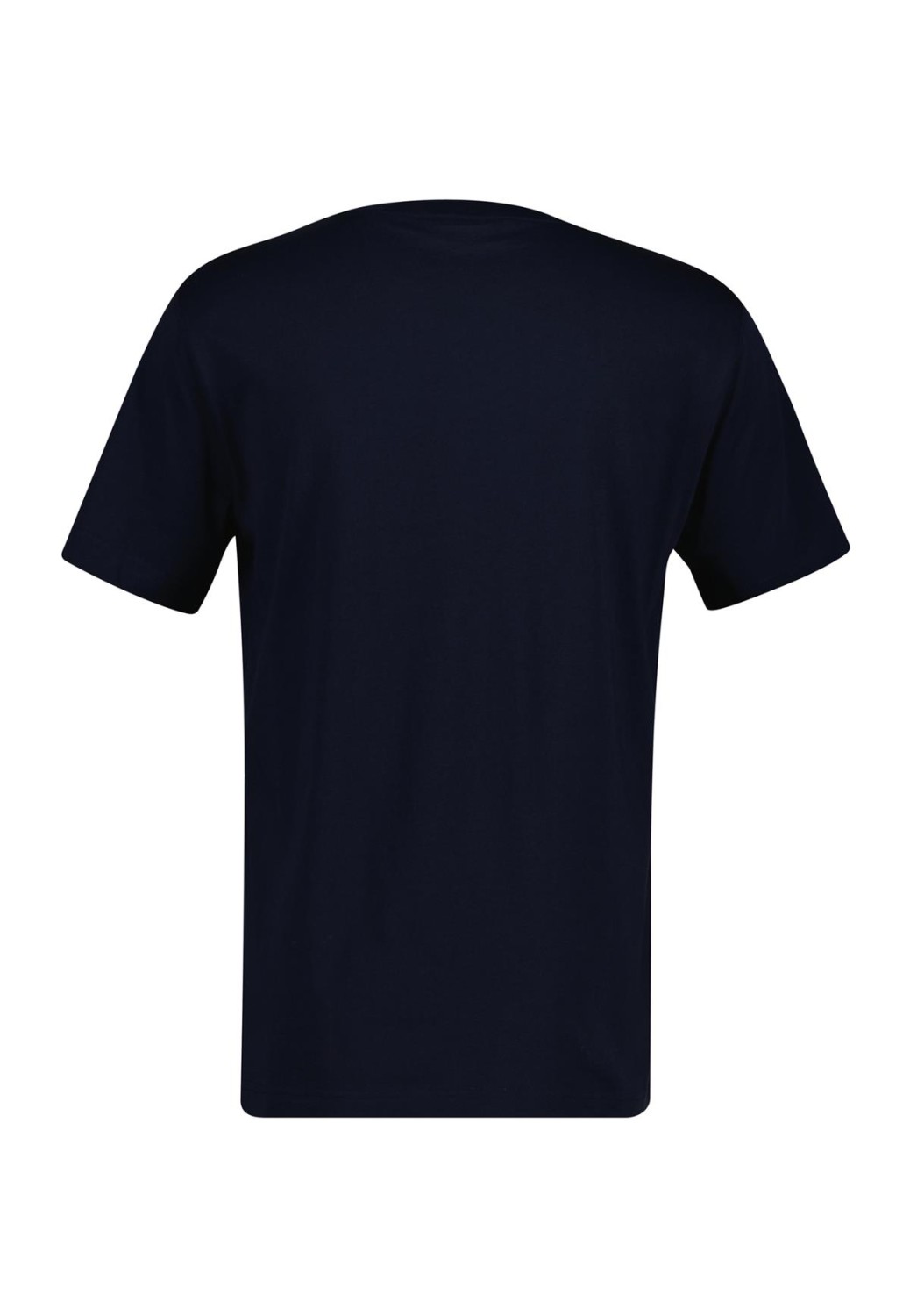 Camiseta manga corta de algodón en dos colores verde y marino, de cuello redondo con inicial en grande de rizo.