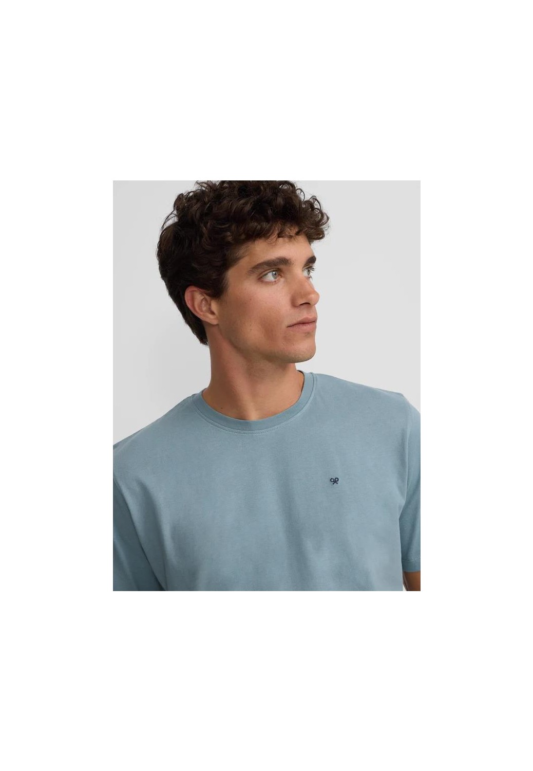 Camiseta azul índigo de manga corta confeccionada en 100% algodón de corte Regular fit. Presenta cuello redondo. Cuenta con bordado de raquetas en el torso a contraste en color a .