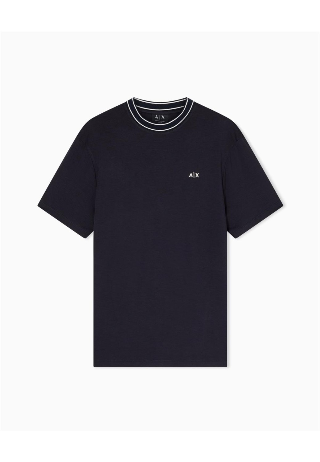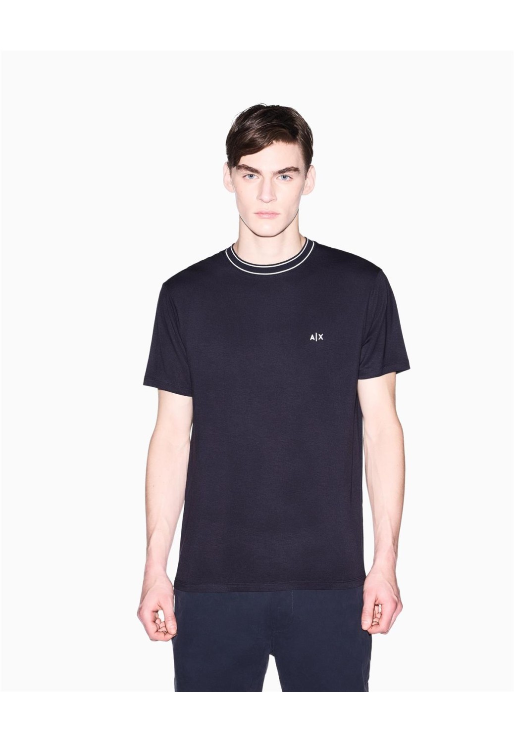 Camiseta en 95% viscosa y 5% de elastán de cuello redondo con vivos blancos en el cuello, muy agradable al tacto.