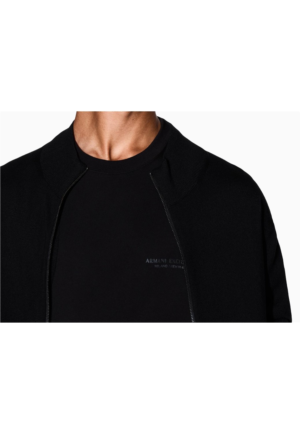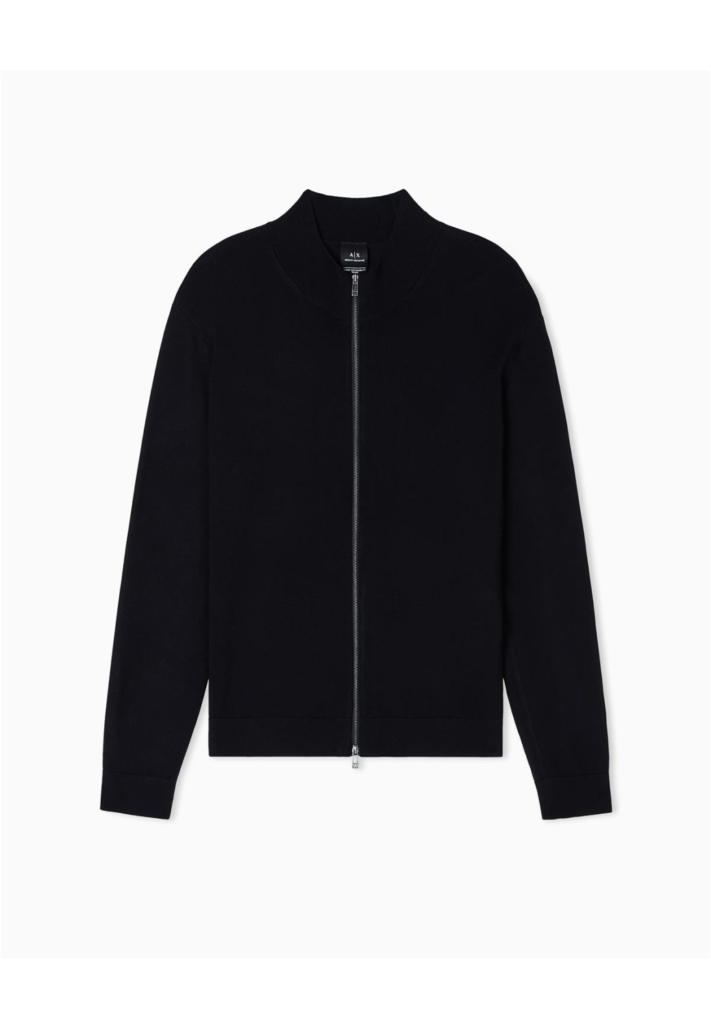Chaqueta de punto con cuello semicisne, cierre cremallera y bajo y puños acanalados. Tejido 78% viscosa Y 22% poliamida.