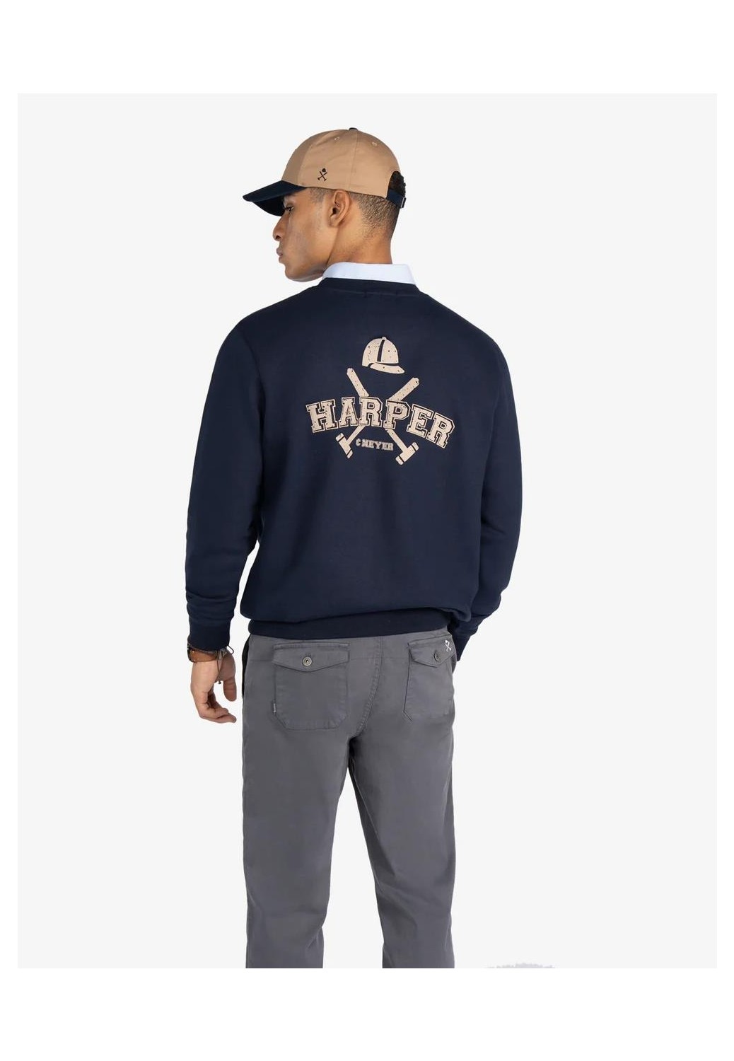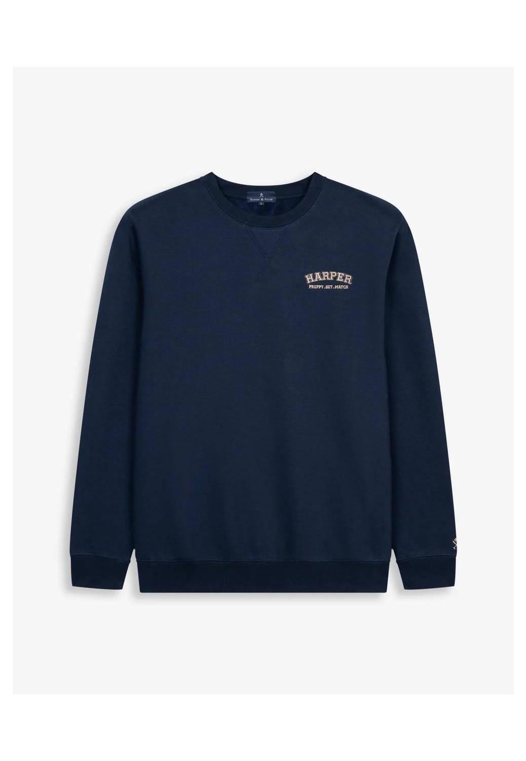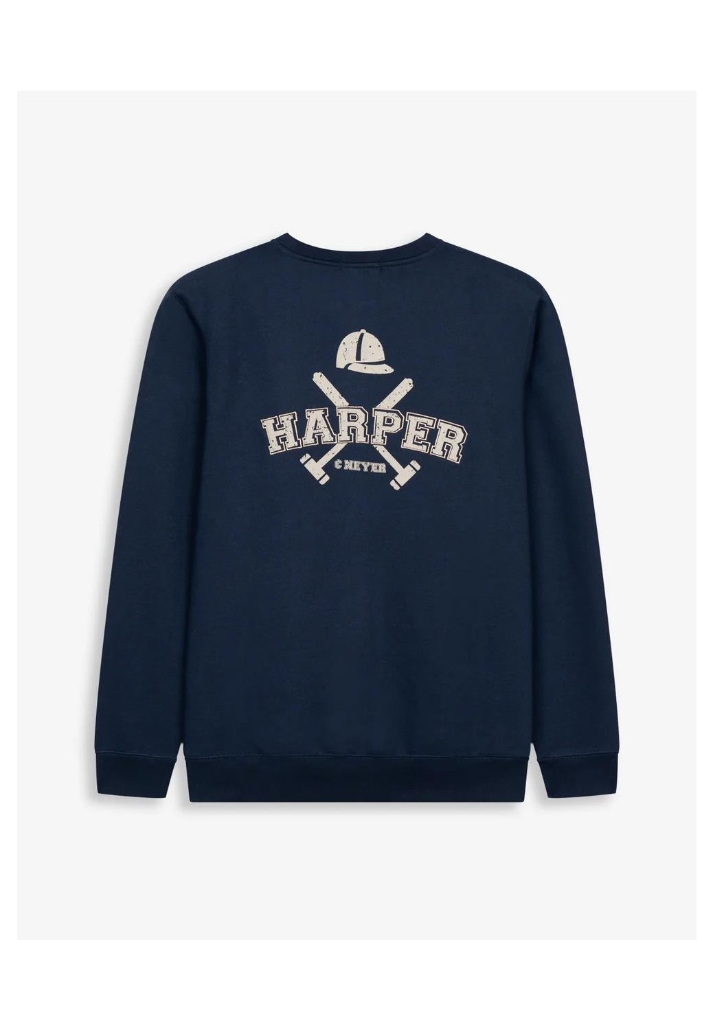 Sudadera de algodón con cuello redondo y corte regular fit. Confeccionada en mezcla de algodón suave y resistente, presenta acabados en canalé en cuello, puños y bajo para un ajuste clásico. Incluye bordado frontal “Harper & Neyer”, evocando el espíritu deportivo de los campus universitarios americanos.