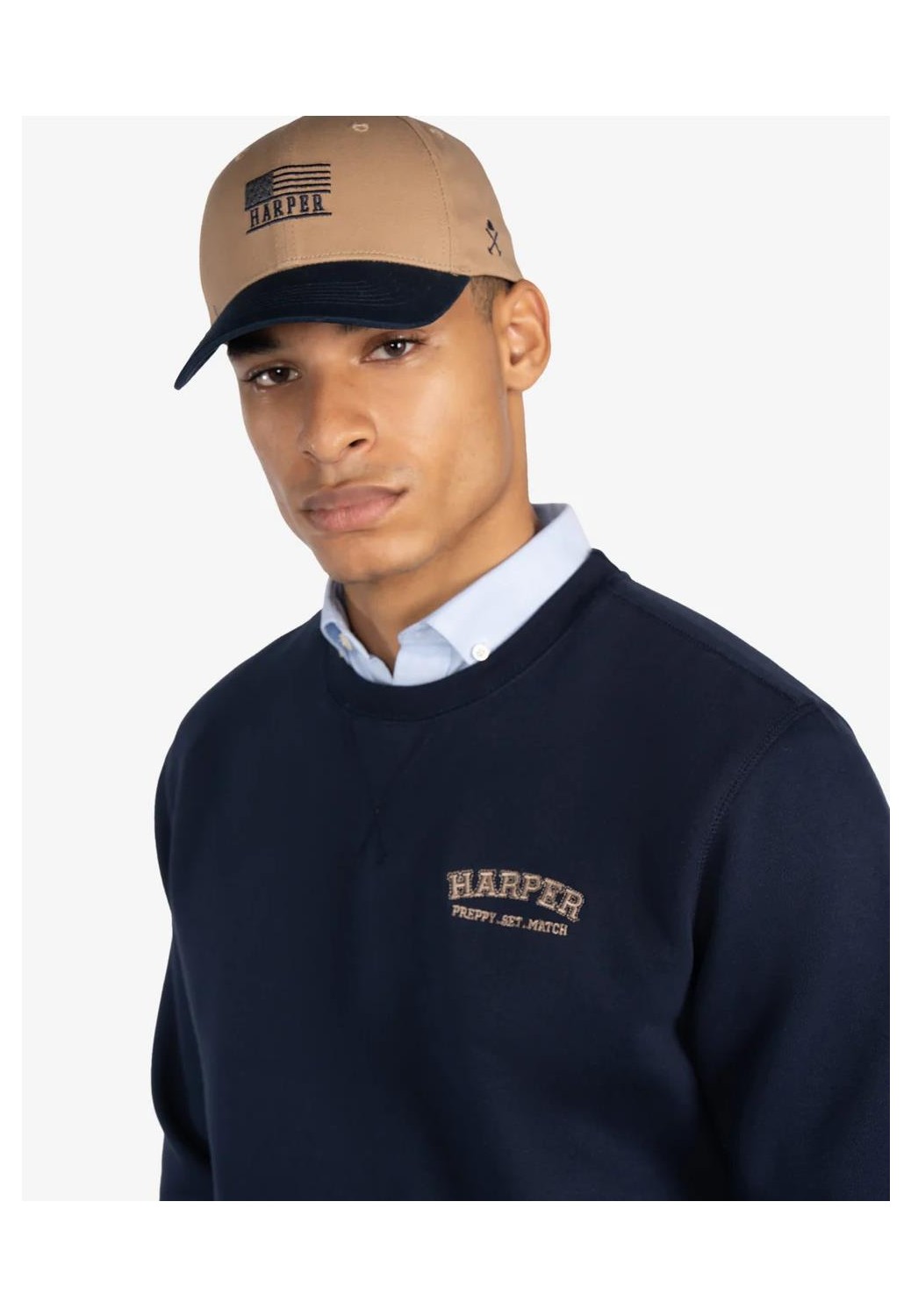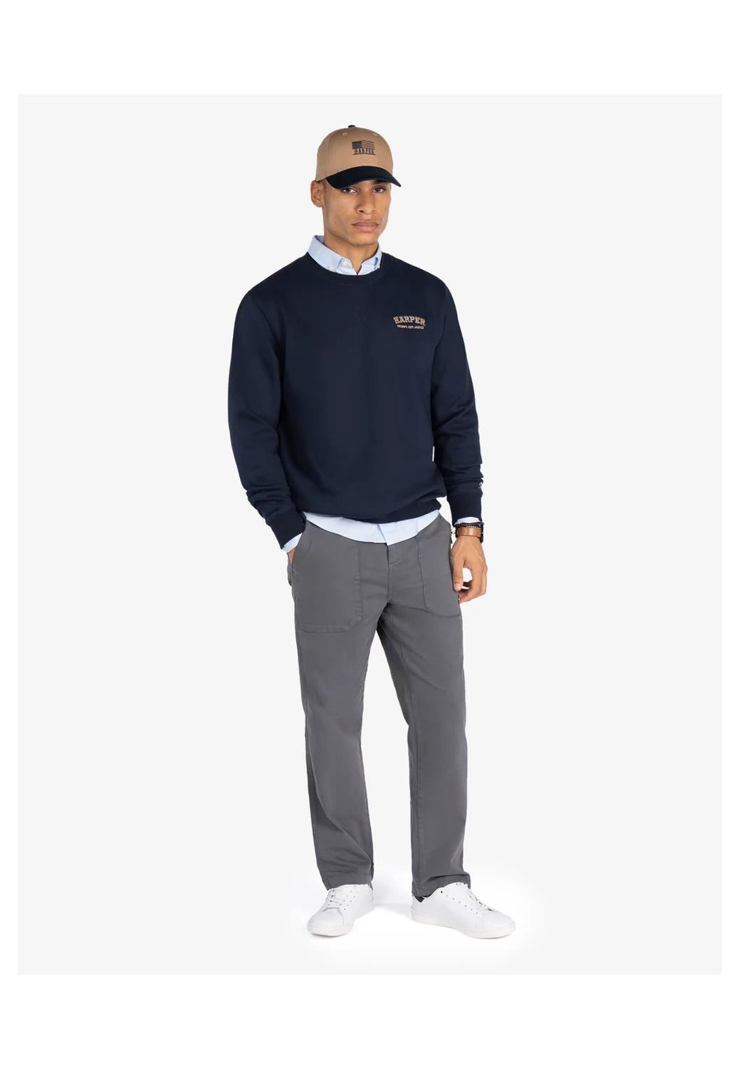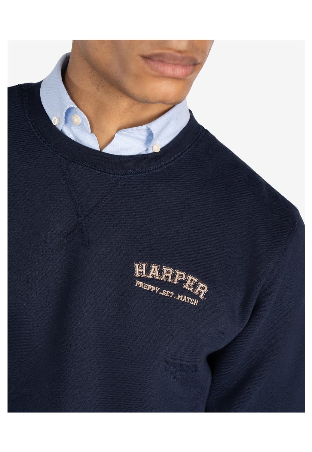 Sudadera de algodón con cuello redondo y corte regular fit. Confeccionada en mezcla de algodón suave y resistente, presenta acabados en canalé en cuello, puños y bajo para un ajuste clásico. Incluye bordado frontal “Harper & Neyer”, evocando el espíritu deportivo de los campus universitarios americanos.