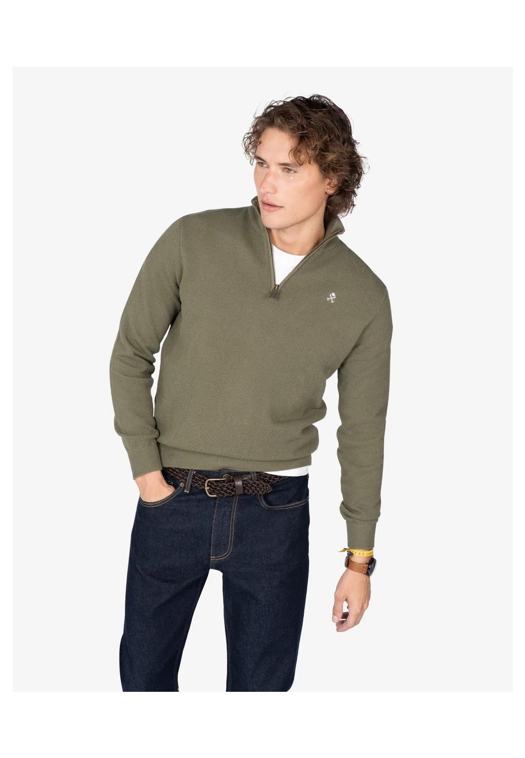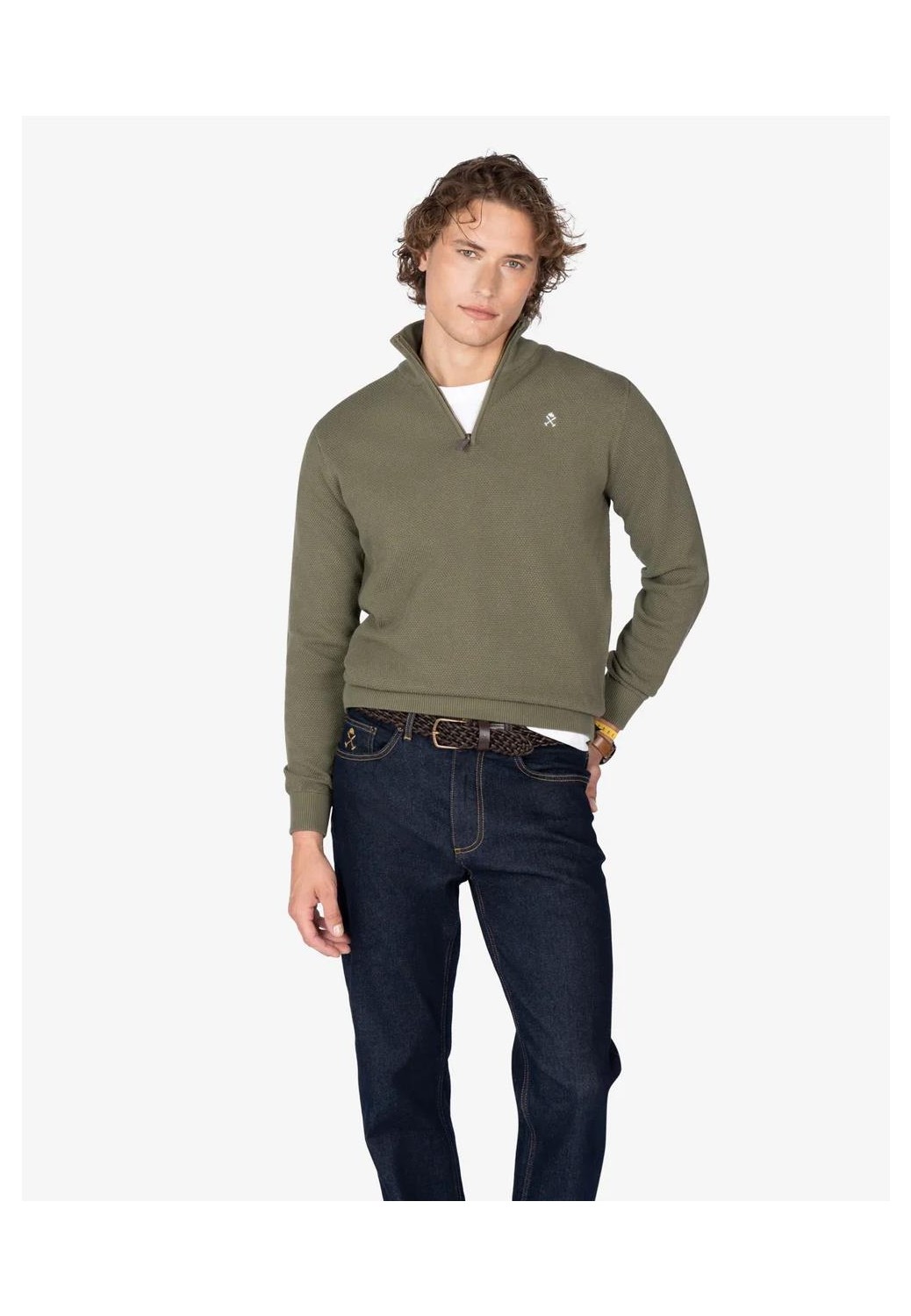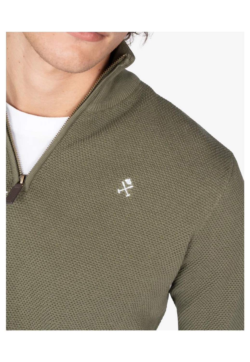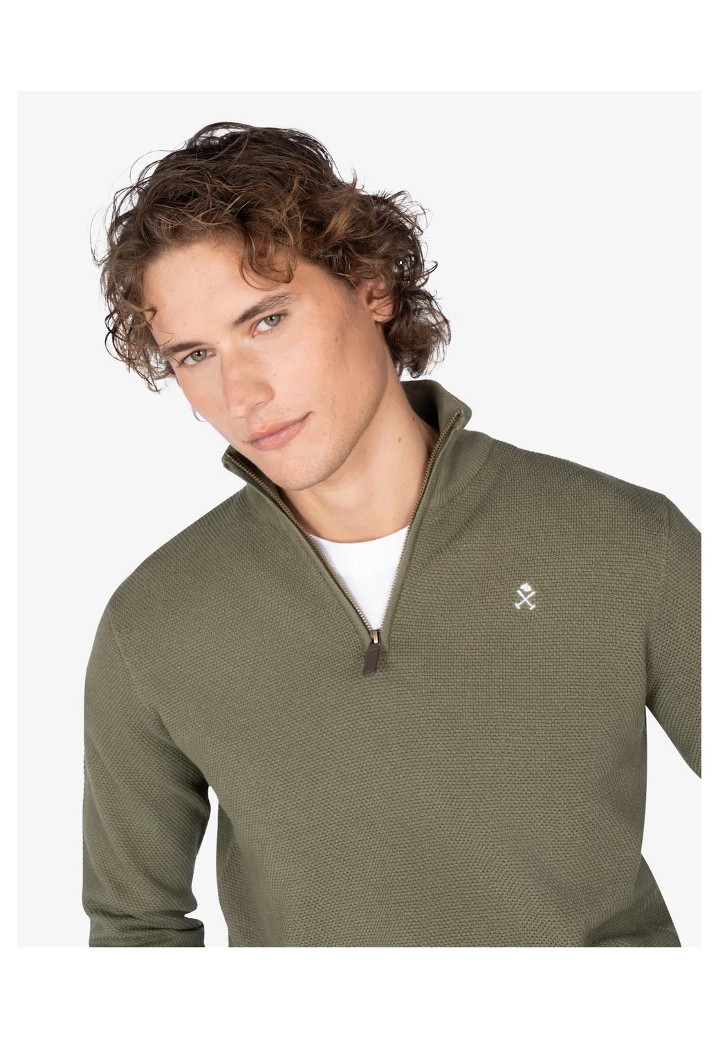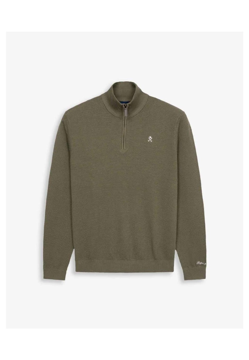 Sueter Harper & Neyer en algodón 100% con cuello cremallera, con logo pequeño bordado en el pecho y en el puño.